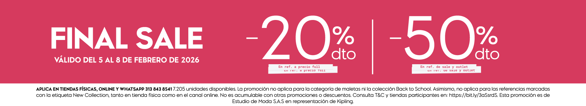 Queremos que tu experiencia de compra sea perfecta. Ten presente que para este Final Sale se excluyen las referencias de la colección de lanzamiento "Back to School" y toda la línea de maletas de viaje. Te invitamos a consultar nuestros Términos y Condiciones para conocer el listado detallado de las referencias que no aplican, asegurando que elijas siempre lo mejor de nuestra selección disponible.