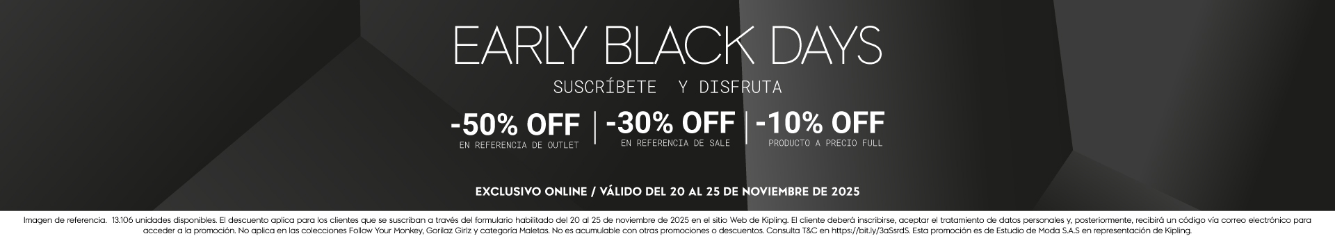 Tu partner de aventura te espera con descuentos increíbles. Del 20 al 25 de noviembre de 2025, llena tu vida de color, organización y estilo Kipling. ¡Regístrate ahora y sé el primero en elegir!